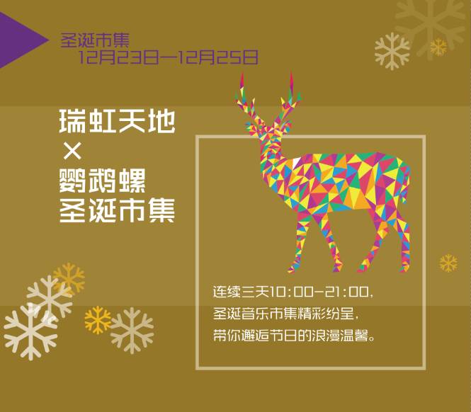 除此之外,还有经典的圣诞集市——瑞虹天地X鹦鹉螺圣诞市集特地前来加持!给闺蜜的小玩意,给爸妈的新年的礼物。还有更关键的是,给广大单身狗们一个tips,带女孩纸来这种集市兜兜逛逛,撩妹效果max!