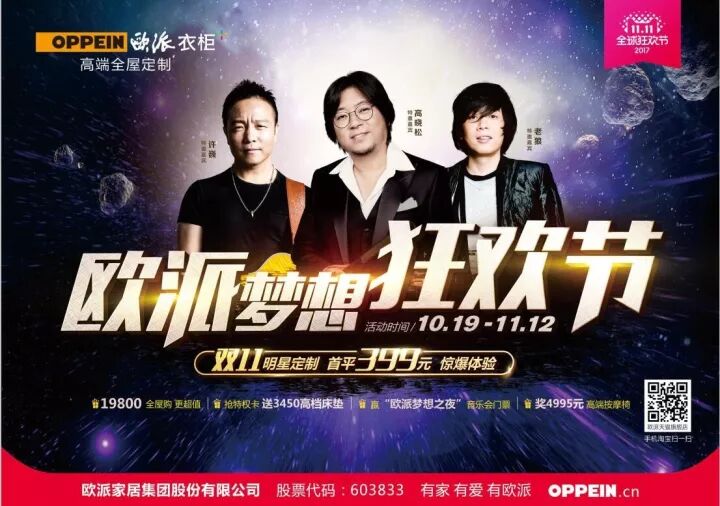 即日起到11月12日,订欧派橱柜,就有机会赢取12月9日,由高晓松、老狼、许巍倾情演出的”梦想音乐会”门票。