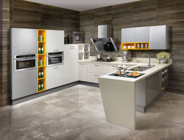 地柜:3米彩晶板地柜,板材为WBMR106太空灰/WBMR202珍珠白