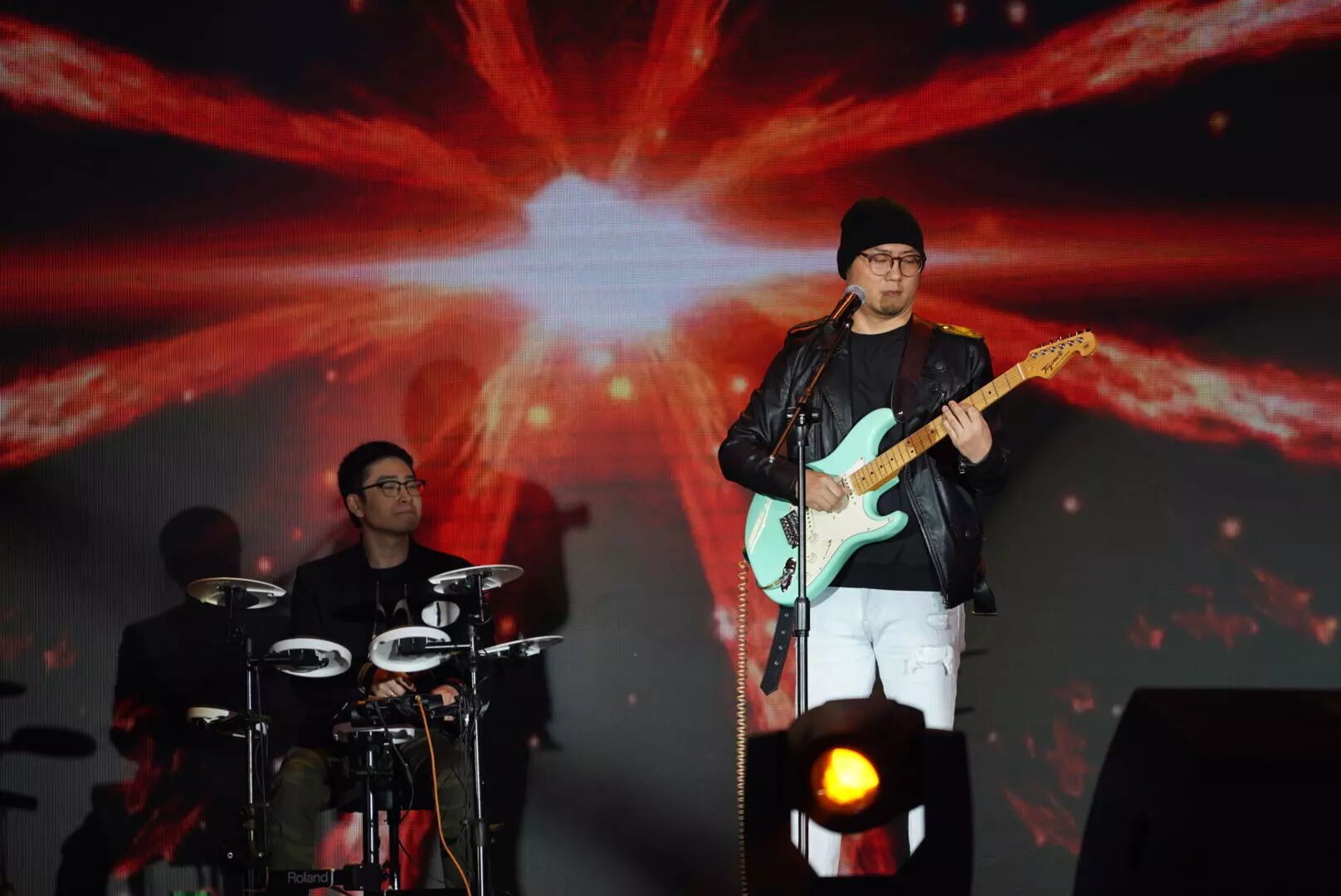 音乐会一开场为大家带来演出的是来自海南本土的明星乐队——乐客乐团!乐客乐团由海南知名音乐人李泳乐先生于2011年组建,他们现场为大家带来多首耳熟能详的经典流行曲目,包括《我给你自由》、《让我一次爱个够》、《找自己》、《一笑而过》以及《爱如潮水》。现场观众跟随着歌手一起大合唱,带动了全场的氛围。