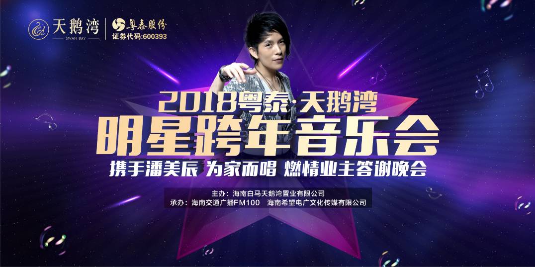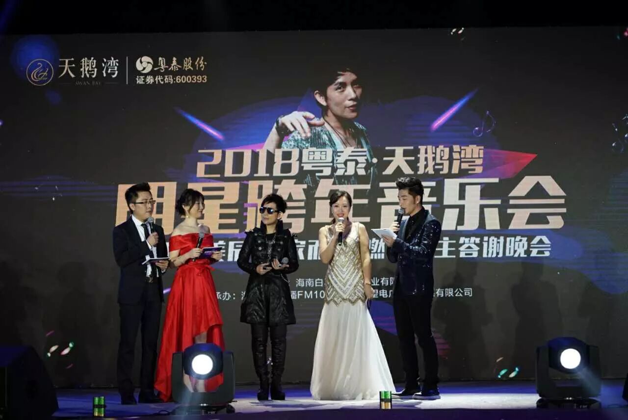 12月23日晚,2018粤泰·天鹅湾明星跨年音乐会在海口天鹅湾隆重举行。本次音乐会是由海南白马天鹅湾置业有限公司主办,海南交通广播、海南希望电广文化传媒有限公司承办,现场由著名歌手潘美辰及多位实力唱将共同为家欢唱,唱出心声。同时,海南交通广播的人气主播赵丹、江枫、佳琪、好好亲临现场主持,为广大观众带来了一场重磅的视听盛筵。