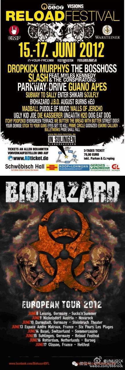 最早将Hip Hop融入硬核与金属混合的乐队之一美国BIOHAZARD(生化危机)2012年6月15日德国Reload音乐节专业录制现场视频发布。http://t.cn/zWZdhHq