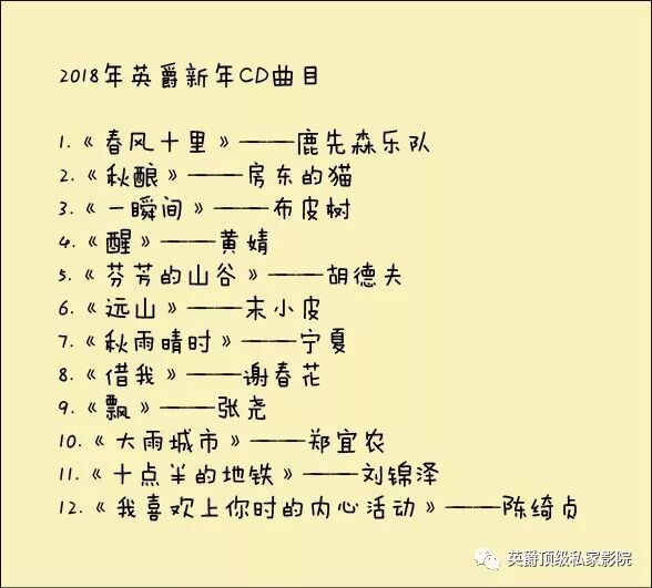 2018年新年CD曲目精选了12首民谣歌曲,汇聚各种民谣特色,或呢喃,或低吟,又似朋友在你耳边低声诉说着一个遥远的故事···初次听来,觉得陌生又亲近,仿若自己就是歌曲中的主角,再听,恍然大悟中领略别一番滋味。
