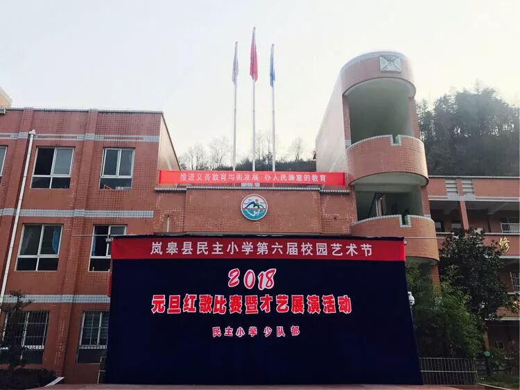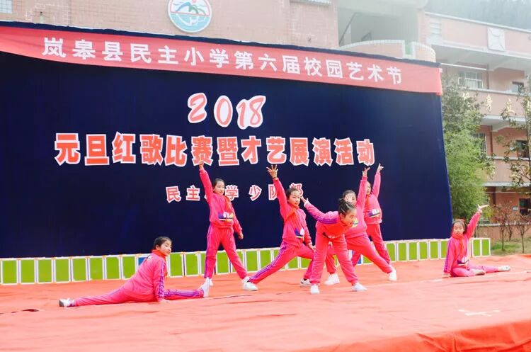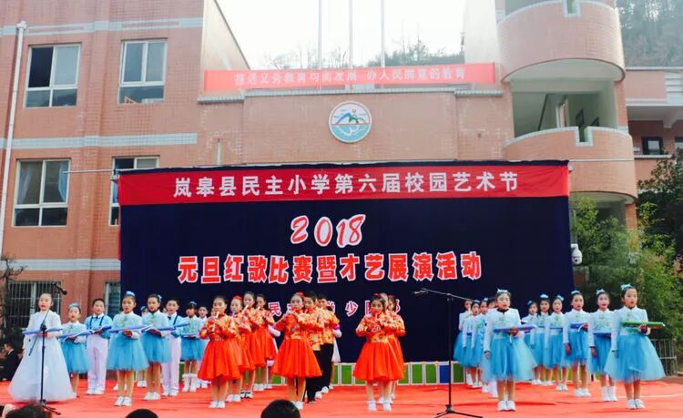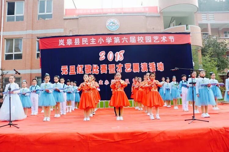 为弘扬爱国主义和民族团结精神,在元旦来临之际,2017年12月28日,岚皋县民主小学少队部组织全校师生举行了民主小学第六届艺术节·2018元旦红歌比赛暨才艺展演活动。