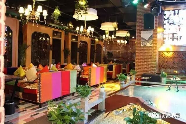 这儿的卡座很特别,五彩斑斓,看见心情都好。