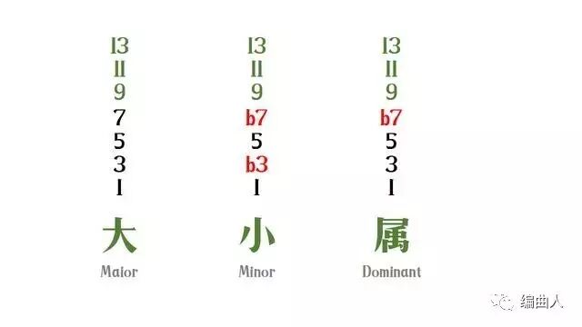 你就只要把最低音开始的大调音阶的1357音排列出来就可以了。