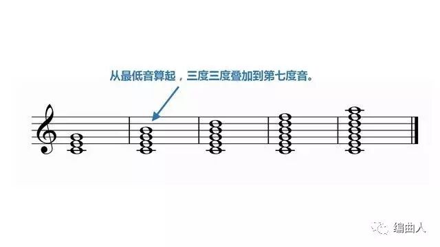 意思是从最低音算起,三度三度的往上叠,叠到第七度音的和弦