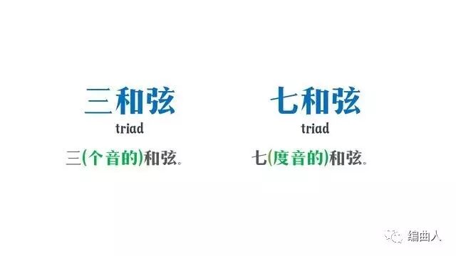 三和弦是指三个音的和弦。七和弦是指七度音的和弦。