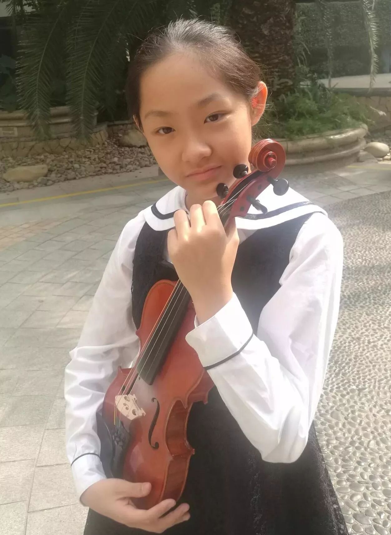 11岁,6岁时开始学习小提琴,并通过参与社团演出、参加音乐夏令营学习,参加国内外比赛等方式,不断提升音乐见识。加入少年宫弦乐演出团后,在罗晓林老师的指导下,她的合奏水平迅速提升,成为骨干团员之一。