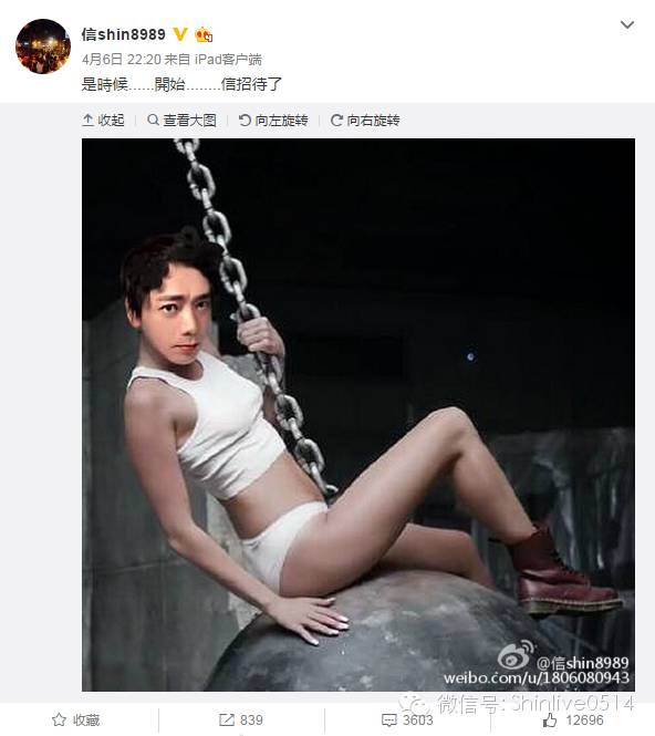 昨天晚上,更新了微博的“谐星”信哥哥(信姐姐),配的图差点吓坏了小编……