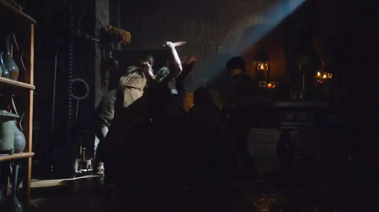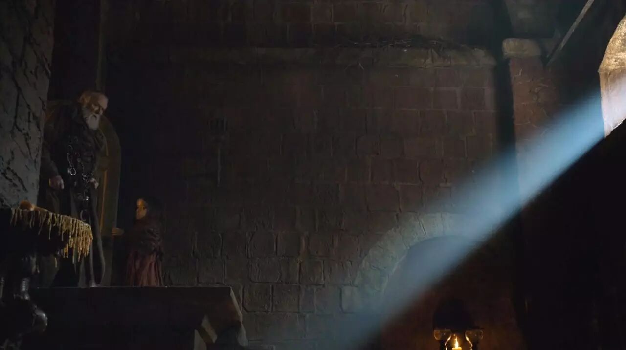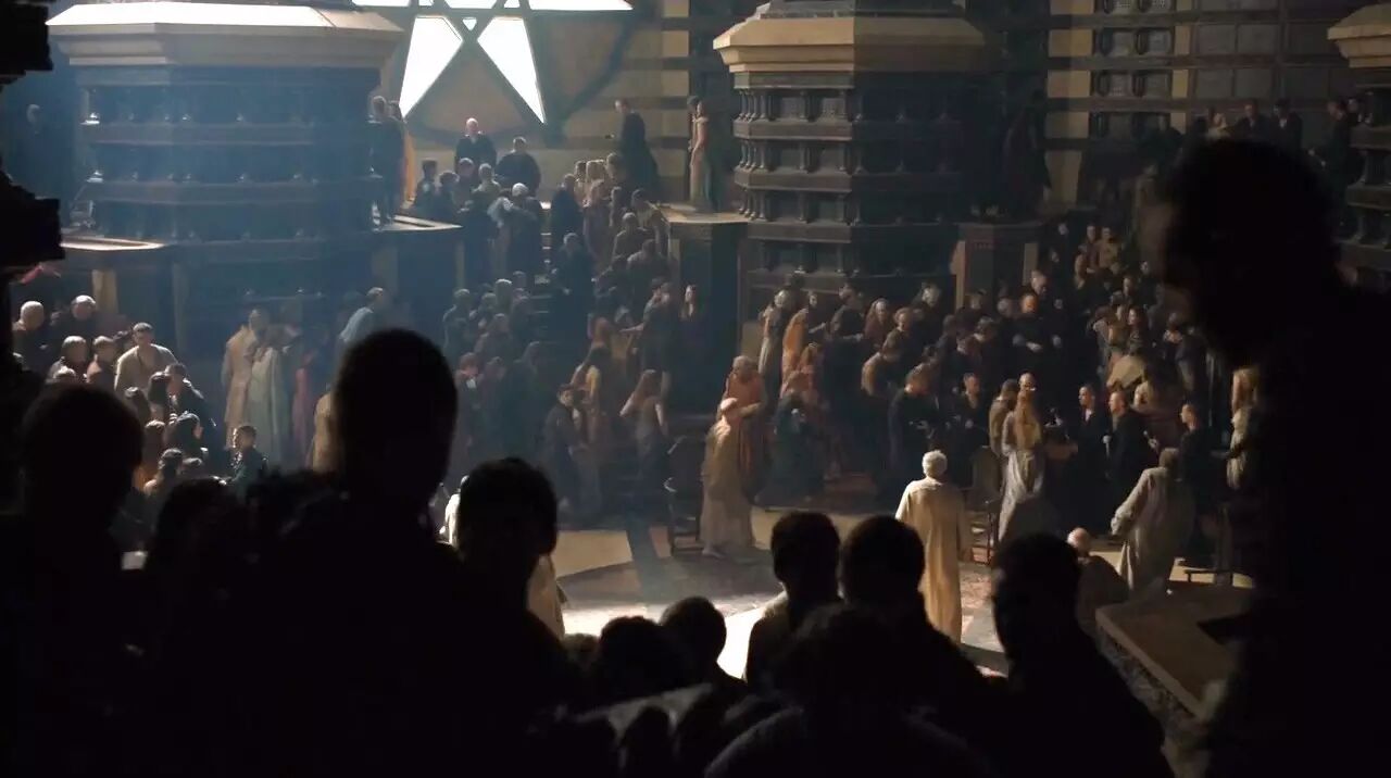 影片开始第一帧,教堂钟声响起,映入眼帘的是瑟曦(Cersei)视角下的大教堂,是自己即将被审判的地方,也是本集第一个高潮到来的地方。