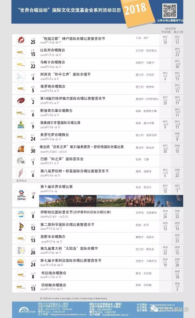 2018年南非将要见证一场合唱盛事:第十届世界合唱比赛将于2018年7月4-14日在南非茨瓦内举行。合唱饕餮盛宴您不容错过,这同时也是南非第一次举行如此盛大的合唱音乐活动,将会带领全世界的人们跟随音乐的韵律旋转和歌唱。