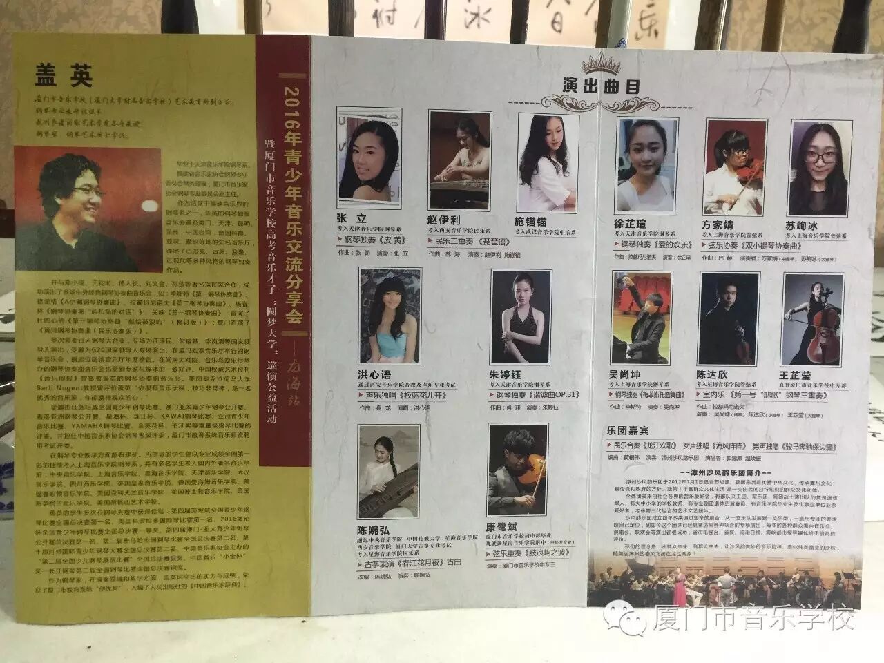2016青少年音乐交流分享会暨厦门市音乐学校高考音乐才子“圆梦大学”公益巡演活动在龙海市晨晖文创产业园举办,活动由龙海委员会、厦门市音乐学校联合主办。