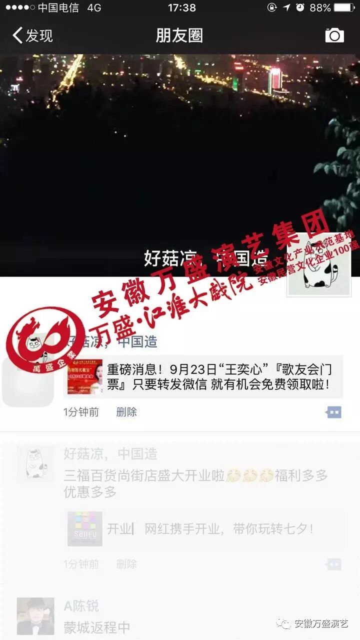 转发分享此微信——发送朋友圈——截图发送至万盛江淮大戏院官方微信——参与抽奖