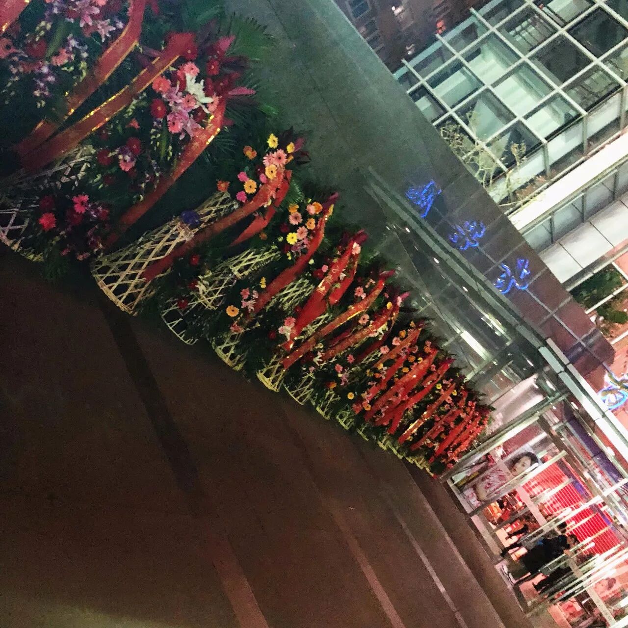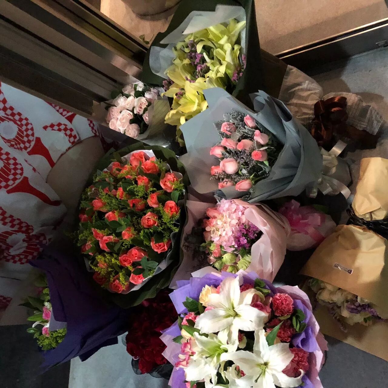 路旁摆满了花篮、鲜花,满满的都是家人朋友们的祝福。