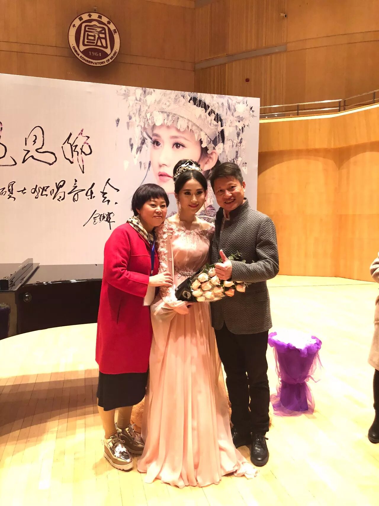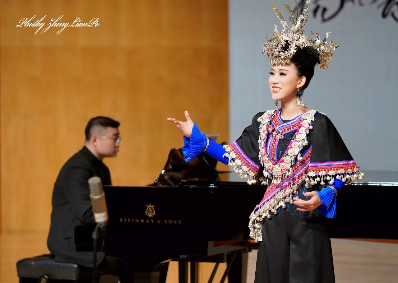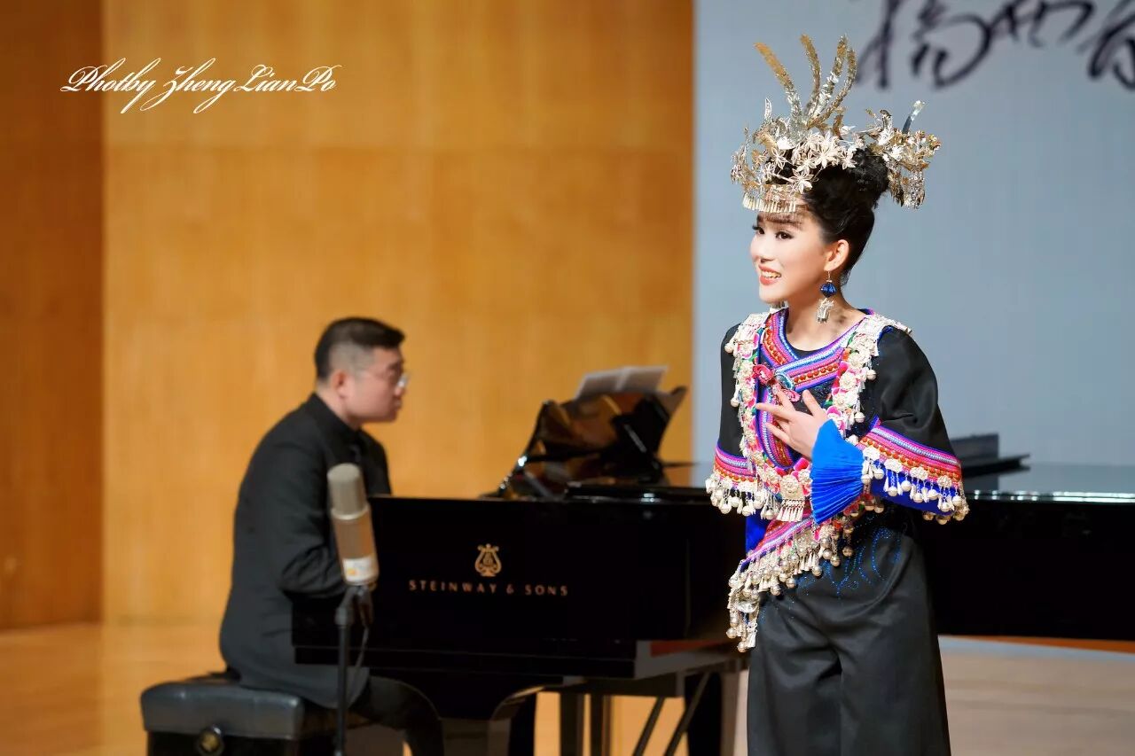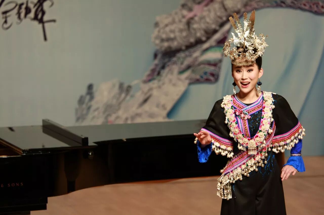 2014年,在中国音乐学院,音子以优异的成绩完成了本科民族声乐演唱专业,并以专业和文化第一的骄人成绩,考取本院研究生,师从当代著名教育家金铁霖教授。扎实的专业功底,勤奋向学的努力,亲炙大师光焰的独特机遇,并能博取兼收,使得音子学业日益精进,影响跃出校园。1 荣获第四届“多彩贵州”歌唱大赛民族组银奖(2011)2荣获第四届“神州唱响”全国高校声乐展演民族组金奖(2012)3荣获第十五届CCTV全国青年歌手电视大奖赛海南赛区第一名及全国优秀歌手,演唱《在希望的田野上》广获好评。荣获第九届中国音乐金钟奖贵州赛区第二名及全国半决赛入围奖。(2013年)4 荣获第十一届“文华奖”全国声乐大赛入围奖 (2014年)5 荣获CCTV《争奇斗艳歌手争霸赛--水族专场》亚军;荣获第十届中国音乐金钟奖贵州赛区第二名及全国半决赛入围奖。同年荣获研究生一等奖学金。(2015)6 荣获CCTV《寻找刘三姐》第三季全国四强。荣获首届贵州省志愿者旅游形象大使冠军,所得奖金全部捐献中国慈善基金会。(2016年)7 荣获第五届全国高等艺术院校中国声乐总展演银奖;硕士研究生学业优秀奖学金;在刚结束的第十一届中国音乐金钟奖获民族声乐全国第六名(女生第二名)(2017)丰富的舞台经验,使得音子能够较好控御表演节奏。调度自身与空间位置关系,在与助演嘉宾穆维平和王泽南的重唱中,配合默契,表演细腻,从中可以发现音子具备出演舞台剧目的极好潜质。更为可贵的是,音子具有较强适应能力,不同色彩区域的民歌,在她都能轻松驾驭。如吴语软侬带有明显越剧特色的《采茶舞曲》(周大风词曲),幽默俏皮的朝鲜民歌《铃铛》,高亢激越的陕北《信天游》以及一唱三叹、缠绵悱恻的山西民歌《想亲亲》,在她唱来,都能入情入理,声情并茂。金铁霖教授提出的:声、情、字、味、表、养、象的教学理念,确实专业声乐教学的指南。