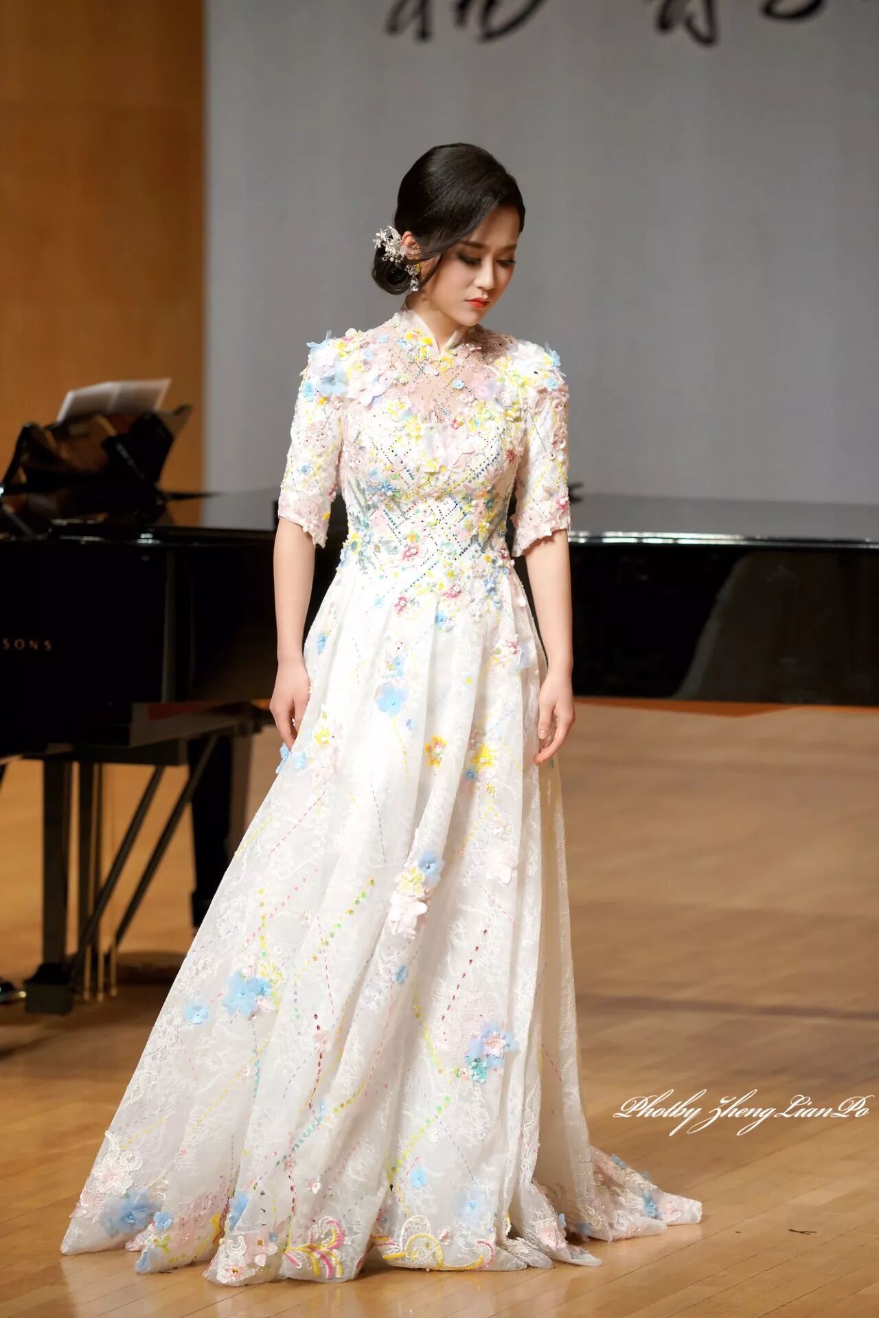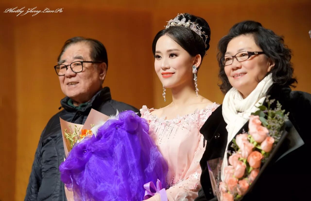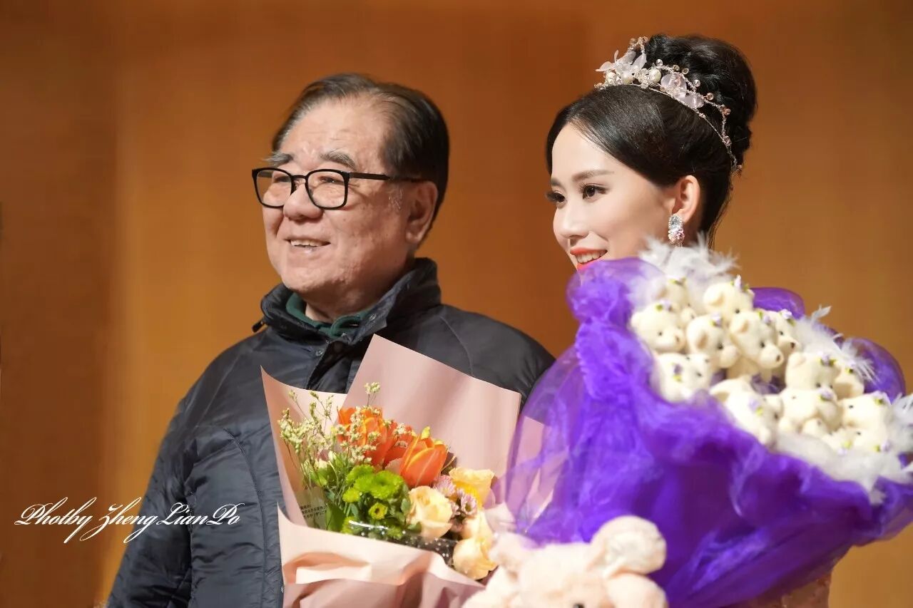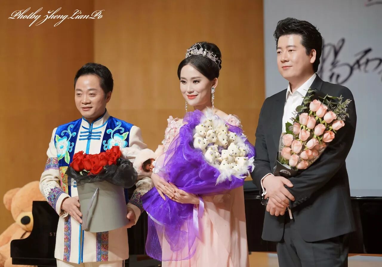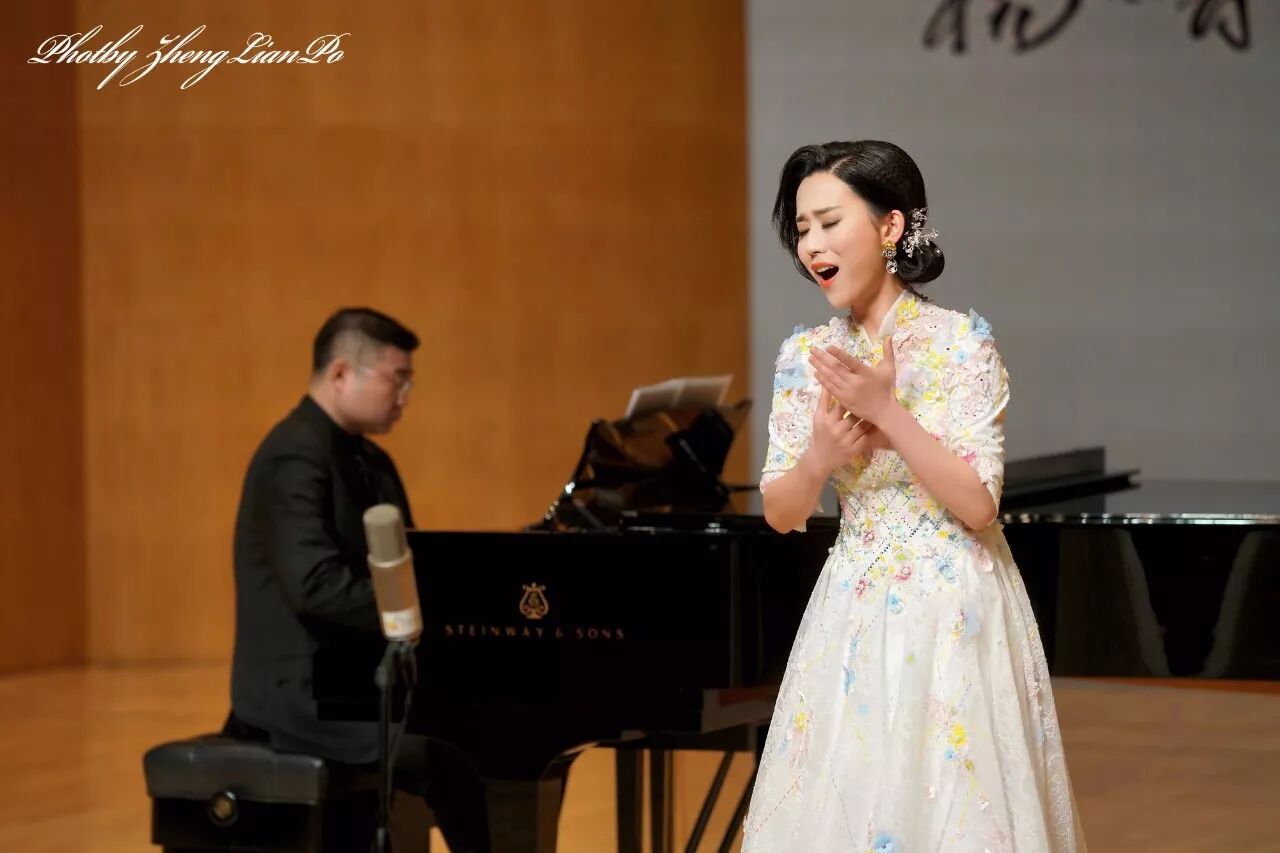 19点30分,音乐会如约唱响。主持人报出第一组,《玫瑰三愿》、《紫菱洲歌》《关雎》《王昭君》四首歌曲,我惊异于作品时间跨度,足历三千多年之久——采自诗经的《关雎》远在周代,《王昭君》则绍述汉代与匈奴和亲的怀柔政策。《紫菱洲歌》歌词则采撷自清季曹雪芹之文学名著《红楼梦》,《玫瑰三愿》则是1932年民国词坛大家龙榆生(龙七)与国立上海音专作曲家、教育家黄自大师联手创作的隽永妙品——这样的历史涵融与情感厚度,岂是一位二十几岁的青年,所能驾驭?但是,随着歌声的展开,我的疑虑随之冰释。无论含蓄、蕴籍,盼春永驻,不受摧折的《玫瑰三愿》;还是心怀愁思研磨不开,伤友别离的《紫菱洲歌》;更有“求之不得、寤寐思服、辗转反侧”的苦于相思的《关雎》,以及被后人争颂,踏雪啖腥,和亲靖边,苦身助汉的的《王昭君》,都被音子吐嘱有节、收放自如、颦笑有度、章法圆融的歌声,一一刻画出来!哦!这已经不再是22年前,同学家的稚气未脱的孩子,举手投足之间,透递出的成熟、自信,驾驭作品时的应付裕如,已经宛然成为名家!
