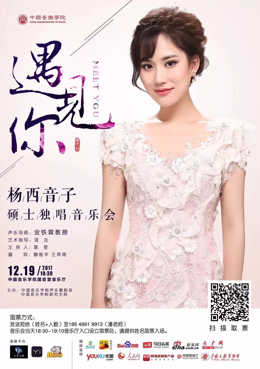 “遇见你——杨西音子硕士独唱音乐会“”于2017年12月19日在中国音乐学院国音堂成功举行,音乐会精彩纷呈,层出不穷,迎来观众连绵不断的掌声和叫好声。到底有多精彩?让我们一起去看看!