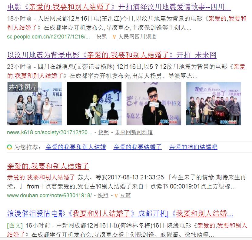 本平台刚刚收到的消息:由李小木原著《亲爱的,我要和别人结婚了》改编的电影,今日在成都开机!本片由覃杰导演,保剑锋、戚砚笛、徐一娢、曹祎诺主演。影片将于2018年杀青,并在5月11日于全国院线上映。===》点击此处了解详情。