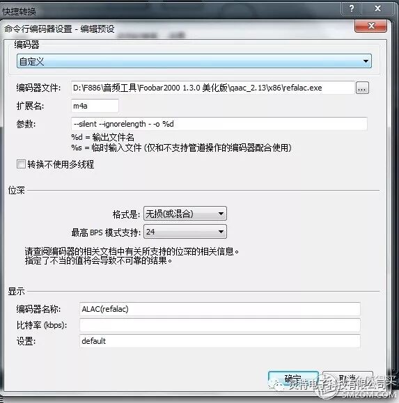 好多人说ALAC格式比较难转换,这里附送ALAC格式的foobar2000设置图: