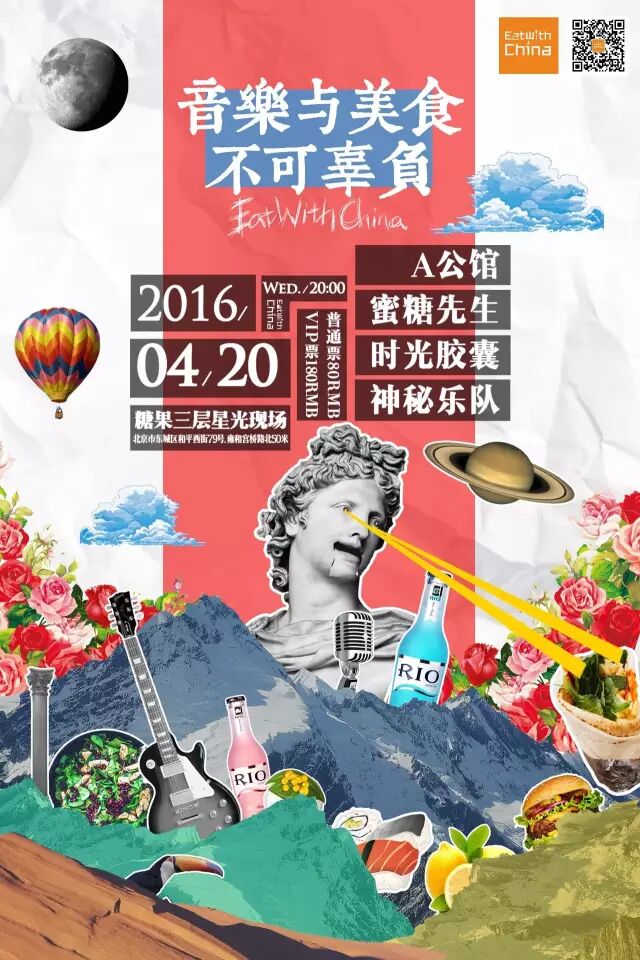 继2015年12月21号在MAO成功举办专场摇滚乐演出之后,这次EatWithChina(全球最火私厨美食社交平台)来到了位于雍和宫的中国第一市内摇滚乐现场,星光现场。