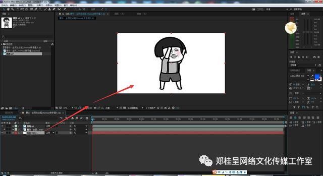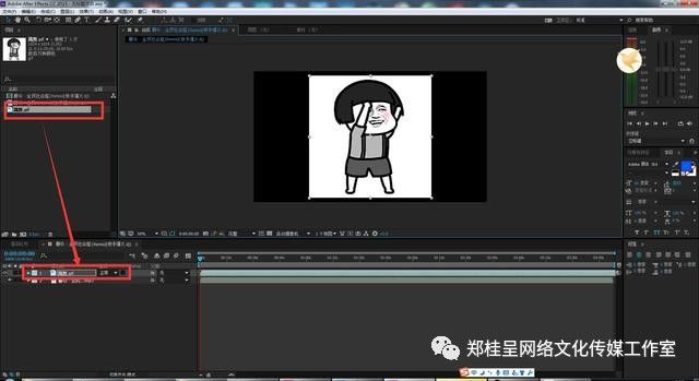 将动态表情导入AE里面,再导入一首背景音乐文件,首先将导入的背景音乐拖入到时间轴文件层,这时候总时间会自动变成音乐的整个时间,窗口也自动默认分辨率;