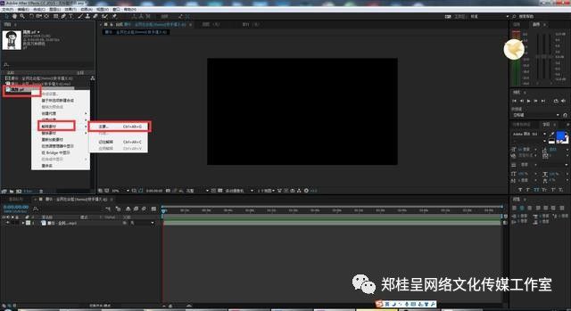 现在我们发现背景是黑色的,动画背景是白色的,看起来不是很舒服,我们再新建一个白色背景看看,右键点击时间轴前面空白的地方--新建---纯色,建立一个白色的背景