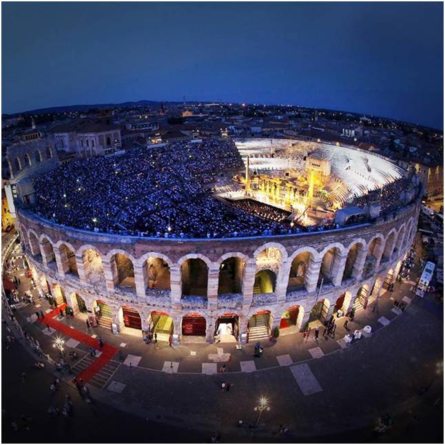 意大利radiomontecarlo.net网近日消息,第95届维罗纳圆形剧场歌剧节即将开幕。从6月23日到8月27日,将上演《拿布果》、《阿依达》、《弄臣》、《蝴蝶夫人》、《托斯卡》等重磅歌剧,同时还将有芭蕾舞王子 Roberto Bolle 、男高音歌唱家普拉西多·多明戈的演出以及贝多芬第九交响曲的专场音乐会。