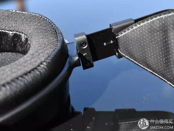 处于重量考虑耳机并没有使用全金属框架,耳机重量仅为399G。头梁部分还是采用的金属材质,并有九孔位可调节,如果调节到合适的档位,佩戴就比较轻不会有太大的松负担,即使佩戴2-3个小时也不会感觉到不适。腔体连接部分可以360°旋转,可以将腔体转到最舒适的角度。
