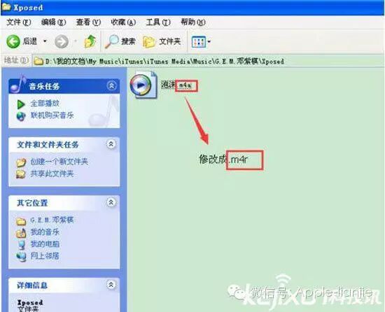 第七步,注意,现在需要在电脑中找到已经创建好的手机铃声,因为AAC版本的铃声和苹果手机铃声版本不匹配,需要修改一下扩展名后才可以使用,因此,这里需要你把铃声扩展名【m4a】改为篇【m4r】,这样才可以。