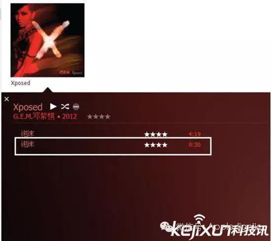 第六步,创建好AAC版本之后,在原歌曲下面就会增加一条名字相同,但是歌曲长度只有30秒的新铃声歌曲,但是现在还不能够设置为铃声。
