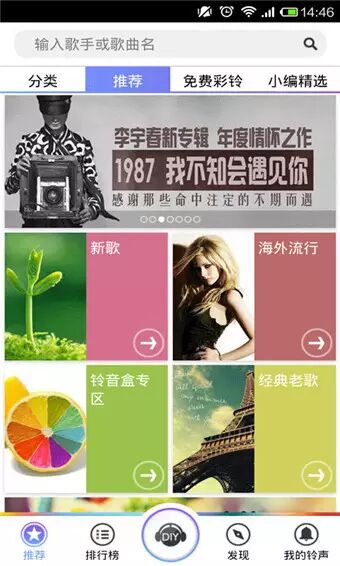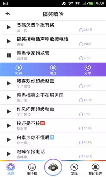 《铃声DIY》用户可手制创意铃声,个性化定制,贴心周到。