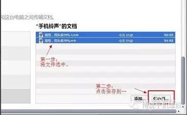 5、在文件中选择你想要使用的铃声,选中后点击保存。