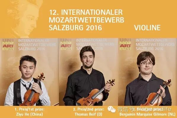 来自中国的何子毓(1999)夺得了第12届奥地利萨尔茨堡莫扎特国际音乐比赛小提琴项目的冠军,同时也获得了1万欧元的奖金。