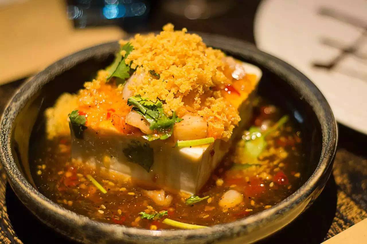 传统的小葱拌豆腐Crossover泰式风味,发挥ALAN一贯风格,一半灵魂在酱汁,混入东南亚香料和青柠汁的豆腐犹如酸酸甜甜的少女,媚态四起。