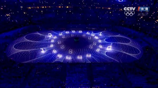 日本数字媒体艺术家真锅大度设计了本次闭幕式上出神入化的影像技术,用控制无人机、用64RGB照相机进行3D扫描、动态捕捉等技术,实现了现实与虚拟世界的不可思议的对接。