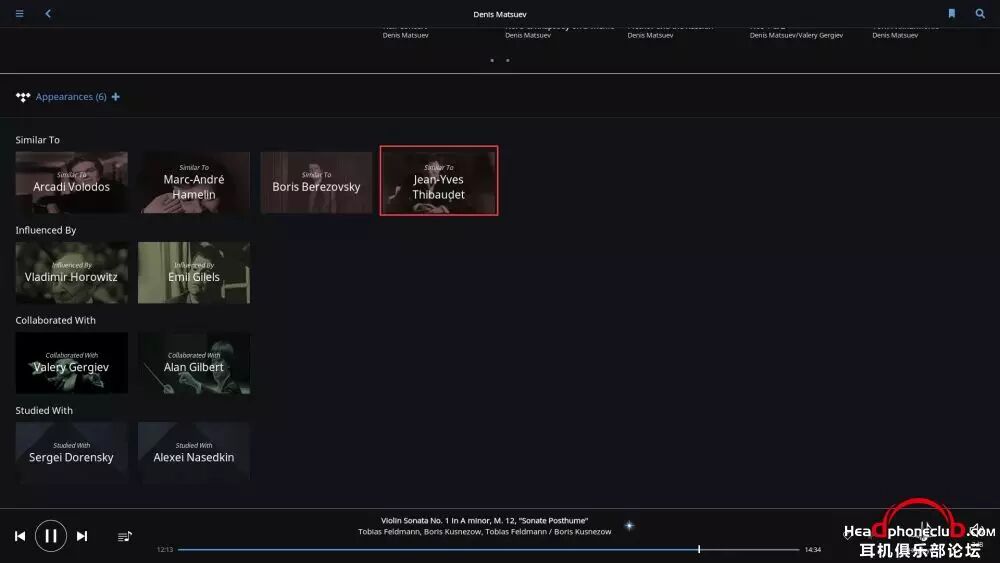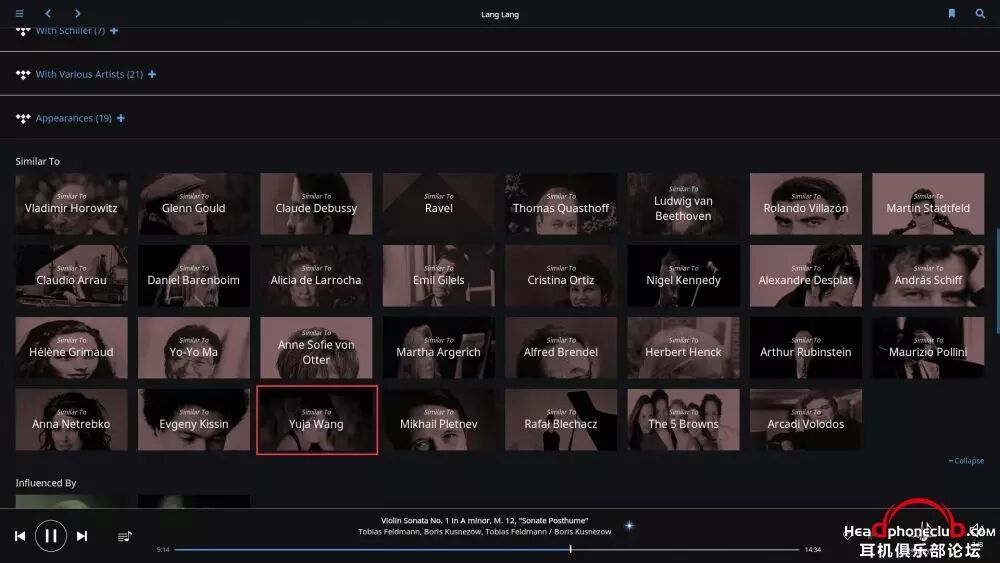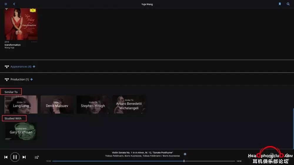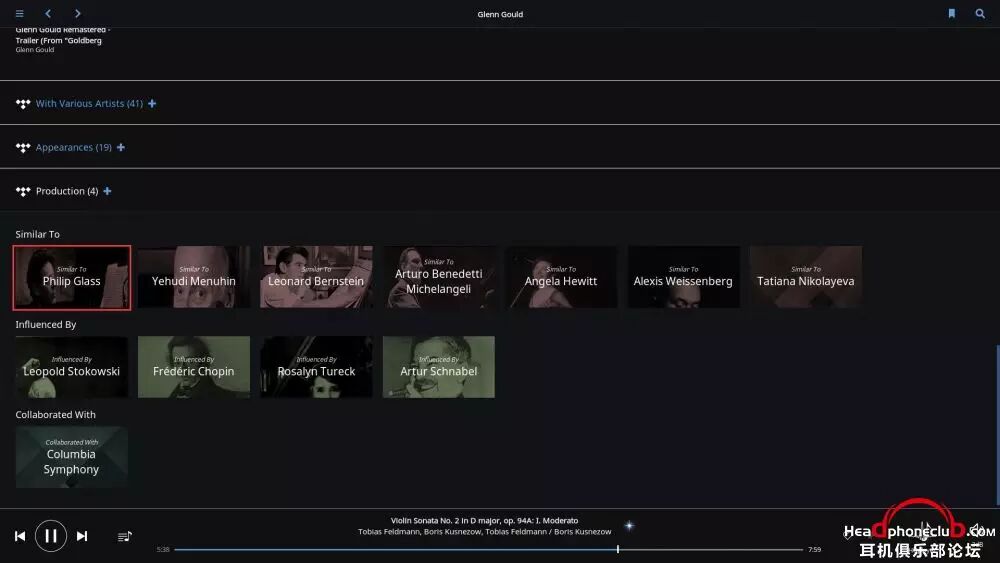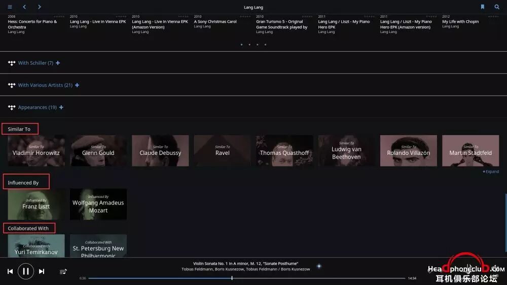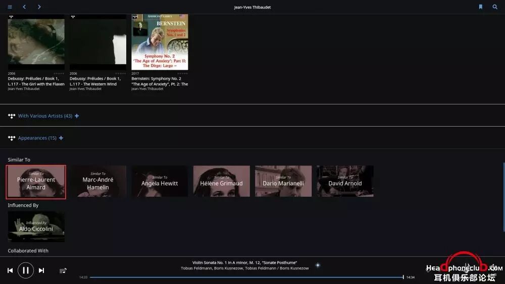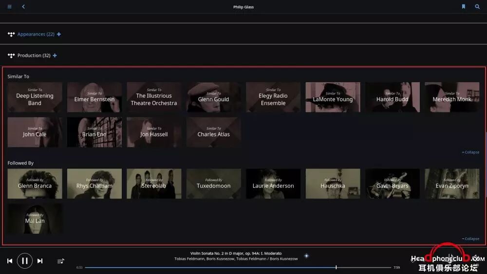 所以,Roon 终端的巨大数据库,使得音乐游览变得无穷无尽,在你安心享受音乐的同时,让爱乐者对音乐的发现变得贪婪,通过艺术家之间的联系,快捷,方便的了解到更多自己感兴趣的音乐。