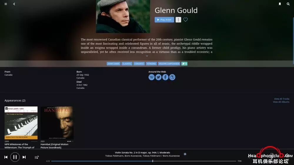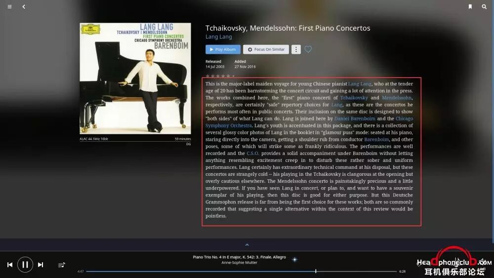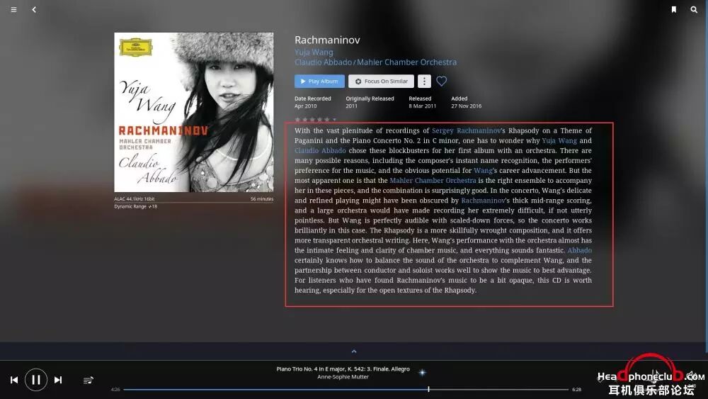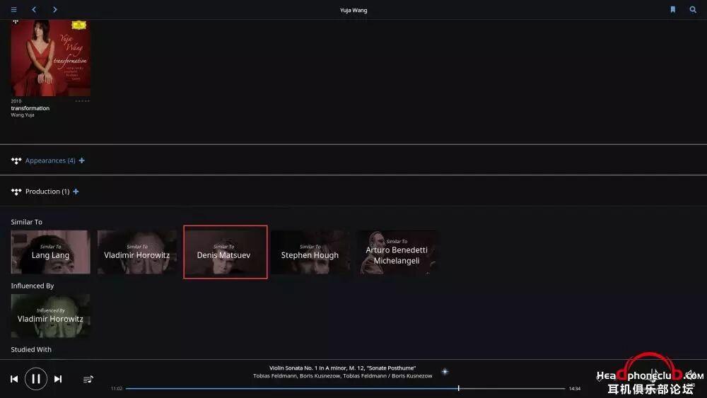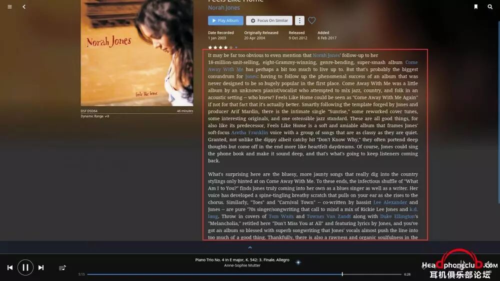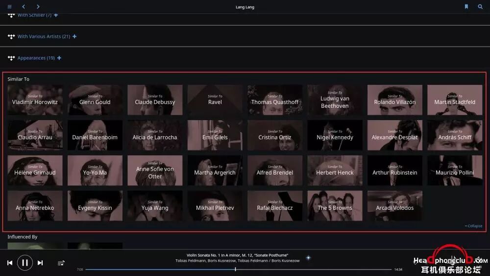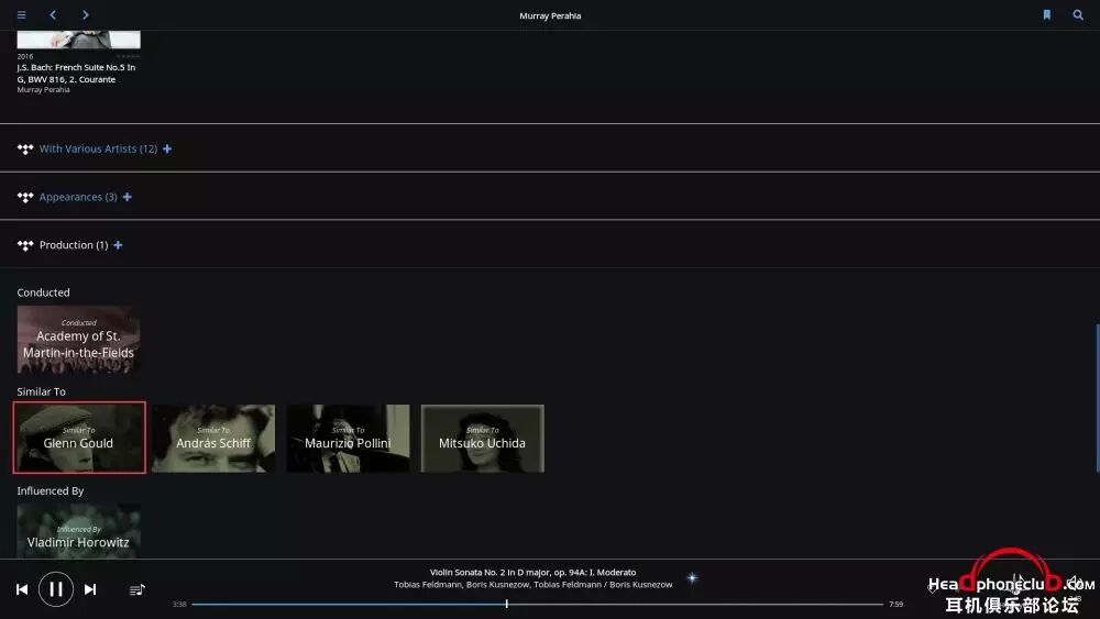 所以,Roon 终端的巨大数据库,使得音乐游览变得无穷无尽,在你安心享受音乐的同时,让爱乐者对音乐的发现变得贪婪,通过艺术家之间的联系,快捷,方便的了解到更多自己感兴趣的音乐。