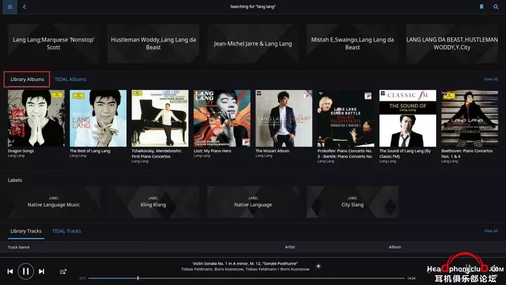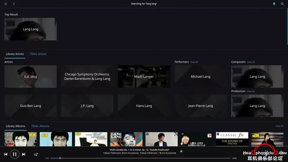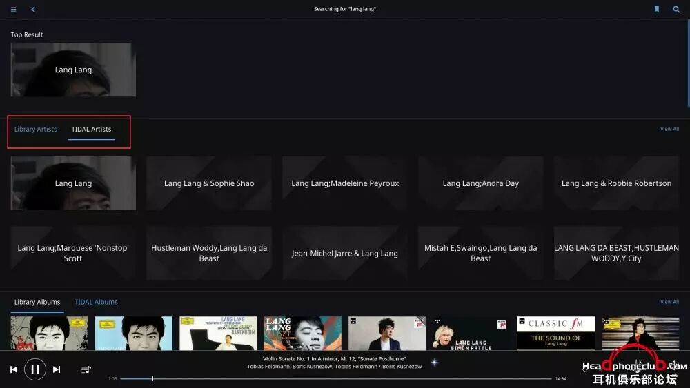 Roon 给出了本地和 Tidal的相关资源