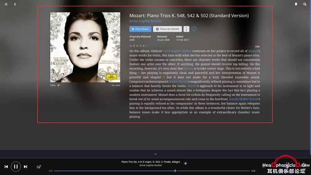 所以,Roon 绝不是单单一款PC HIFI 的音乐播放器那么简单,Roon 的出现,将很大程度改变玩家音乐的体验方式。丰富多元化的音乐,才能让发烧变得更美好。