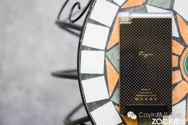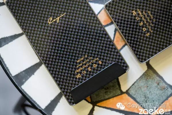 与此前的设计相同,Cayin i5的背面采用一整块碳钎维材料,并在这富有质感的纹路上,有着鎏金的产品信息点缀,这也算得上是斯巴克的标志性做法。金属机身与碳钎维背板的结合,这已经不是Cayin的第一次,但要在这样的基础上实现蓝牙与Wi-Fi链接使用,可就确实是头一回。也正是因为经验不足,Cayin i5这精致的造型设计,就给使用体验带来噩梦。