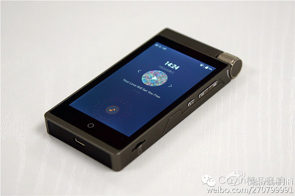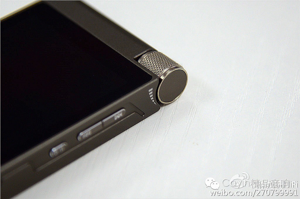 2. 按键布局常规,提供数控电位器、上下曲目、播放暂停这几个硬件按键。缺少硬件锁定按键,类似苹果手机的红点键。实际使用过程中,虽可在设置里调节锁定全局,但切换始终是不太方便,使得i5常开待机时,容易误触播放键,空载播放耗光电量。不过在配上了真皮皮套之后,可完全杜绝误触。