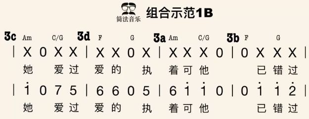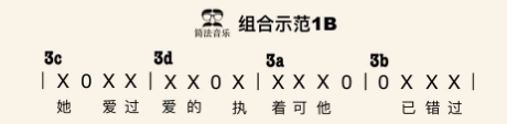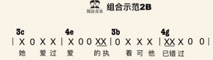 现在我们设定每小节3个音,4小节就是12个音,那么我们把这段歌词浓缩为12个字:“她爱过,爱的执着,可他已错过。”