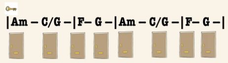 当我们来到第一扇门,Am和弦的组成音:6 1 3.