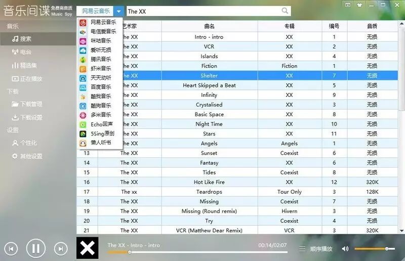 【素材资源】免费无损音乐下载利器 - 音乐间谍 最新版:免费无损音乐下载神器:音乐间谍现已更新至v3.3,这次更新终于恢复WinXP支持啦!此外修复了诸多BUG。最近更新主要已内置了代理用户名,无需任何设置即可使用!支持显示歌词。3.0全新皮肤,全新播放插件,Flac支持图片插入,工具提供类似网盘搜索、外链转换、网络视频下载等功能。
