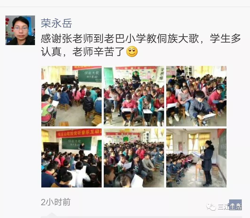 11月27日,三江县“侗韵之声”合唱团成员张锐来到位于海拔1000多米的老堡乡老巴小学,就为教这里的孩子们唱一首侗歌——《侗不离酸》。