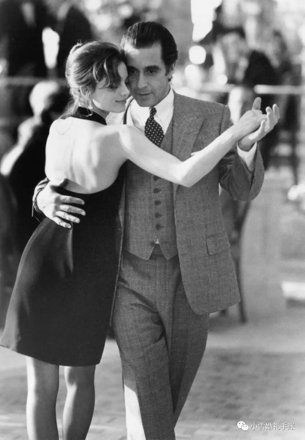 我们的第一支舞是在切蛋糕和晚宴开始之前,选了支比较缓慢优雅的舞蹈。这首歌是电影《闻香识女人》里经典的片段,是首经典的慢tango舞曲,适合没有舞蹈基础的couple。我们提前两个月开始排练,动作是从Youtube上很多视频里学来的,自己编舞,婚前两周找了专业老师指导。