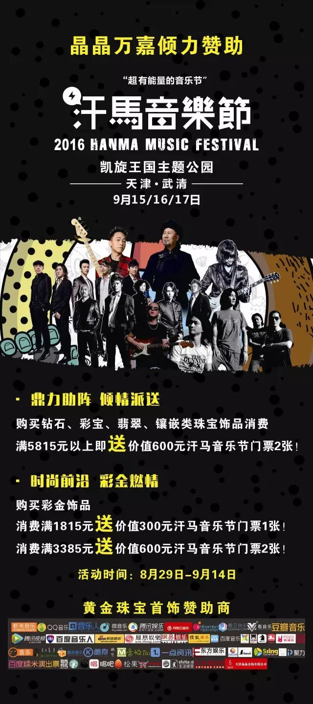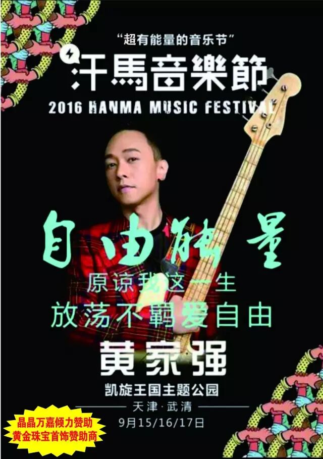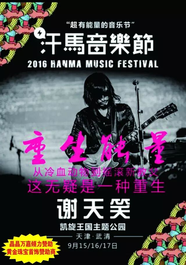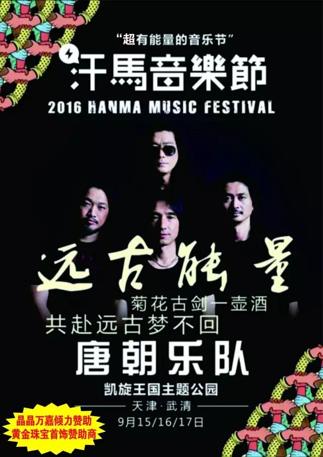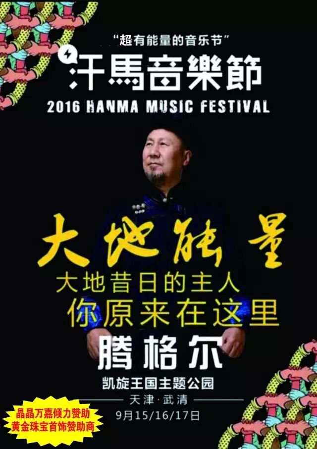 超有能量的音乐节—汗马音乐节将于9月15、16、17日三天在天津武清凯旋王国主题公园强势登场。届时将由七大重量级乐坛大咖:腾格尔、唐朝乐队、黑豹乐队、黄家强、谢天笑、信乐团及帕尔哈提,率领20多组优秀活跃、特色多元的海内外乐队,一起唱响中秋节,嗨翻天津!