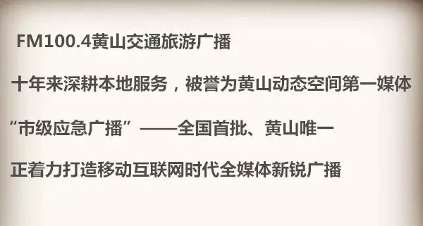 更多精彩请锁定关注FM100.4黄山交通旅游广播,每周一到周五晚上20:00~22:00《一路欢唱》 节目口号:每天唱一首,活动九十九!等你哟~