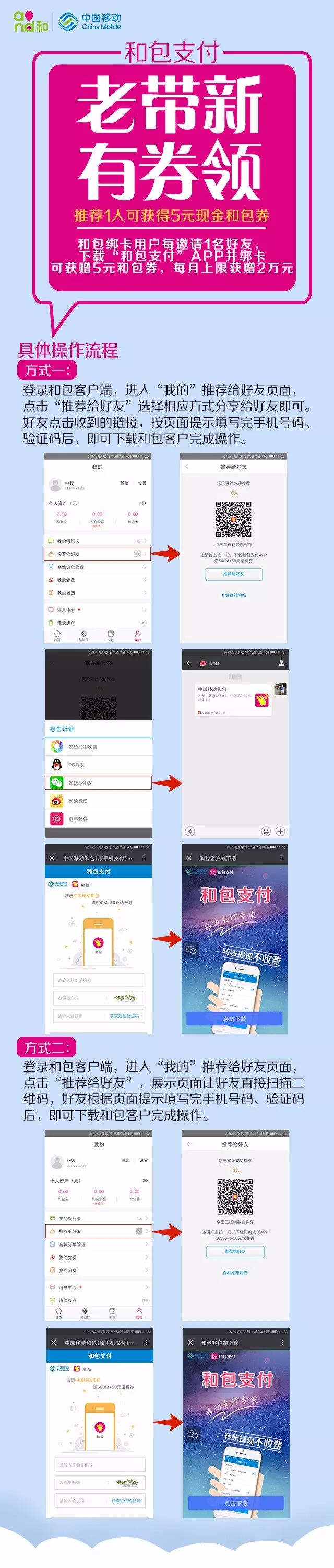 和包支付绑卡用户为自己充值50元及以上话费,可免费获赠20元现金红包(本次活动仅限常德移动用户参与)